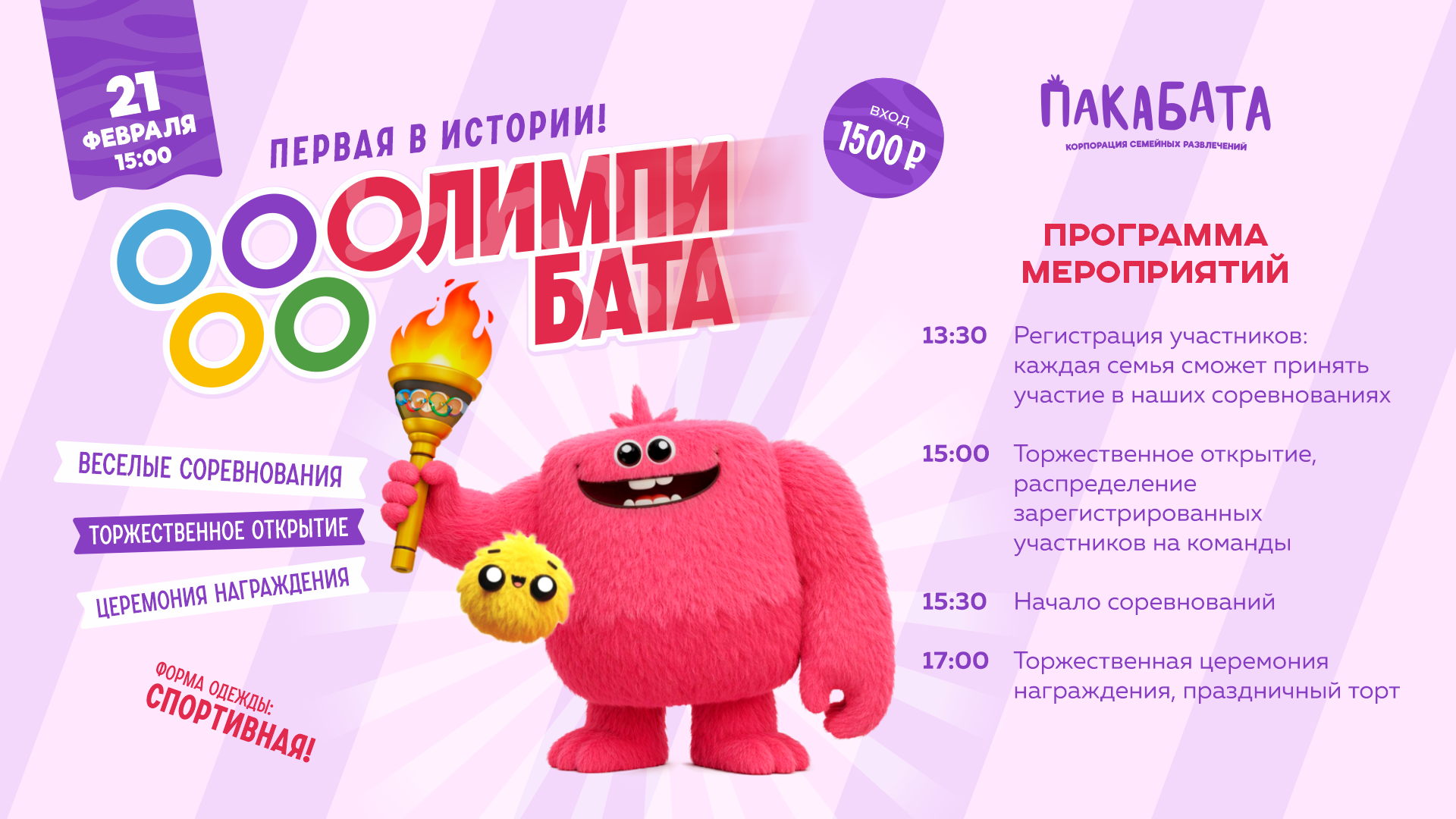 21 февраля в 15:00 в ПакаБата пройдёт первая в истории ОлимпиБата — большое спортивное событие для всей семьи!